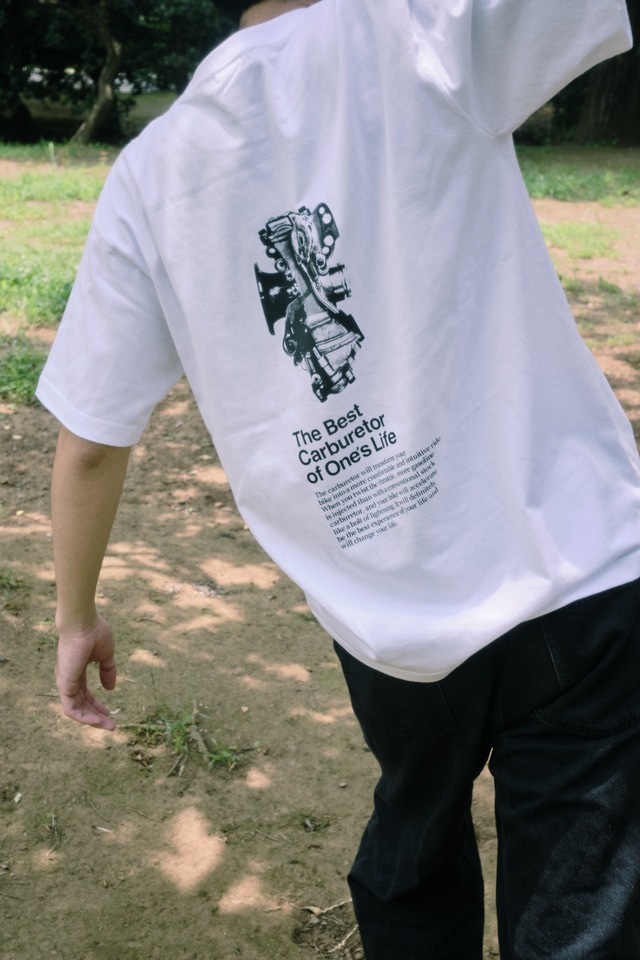 ごきげんいかがお過ごしでしょうか。 今年も弊社より一足早い夏のお中元のお知らせです。 今回も懲りずにまたTシャツを製作致しました。 夏なんてTシャツは何枚あっても良いですからね。 今回はバイクのパーツをモチーフにしてデザインしました。キャブレターっていうパーツです(詳しくはWikipediaへ) バイクに乗る人はもちろんですが意外とバイクに乗らないあなたに向けてデザインしていて、海外の図鑑っぽく洋書っぽくあっさりしたデザインに仕上げたつもりです。細かいこだわりはめちゃくちゃいっぱいあるのでお会いした時にお話ししましょう。 今回モデルをやってくれたのは稀代の火の玉クルーBOURBON TOKYOのメンバー達です。おかげさんでめちゃくちゃかっこいいルックになりました。カッコ良すぎて俺も写りたかったと思いました。 もう一つは我ら心の友であり同級生であり天才カメラマンの大知に僕達の日常を写真に撮ってもらいました。両方とも僕たちのリアルです。だからどっちも正解。 価格は今回もギリギリ攻めての税込¥4,200 サイズはM、L、XL(詳細は後日だします。) 真心と愛情たっぷり込めて作ったTシャツです どうか皆さんで可愛がってやってください。 よろしくお願いします。